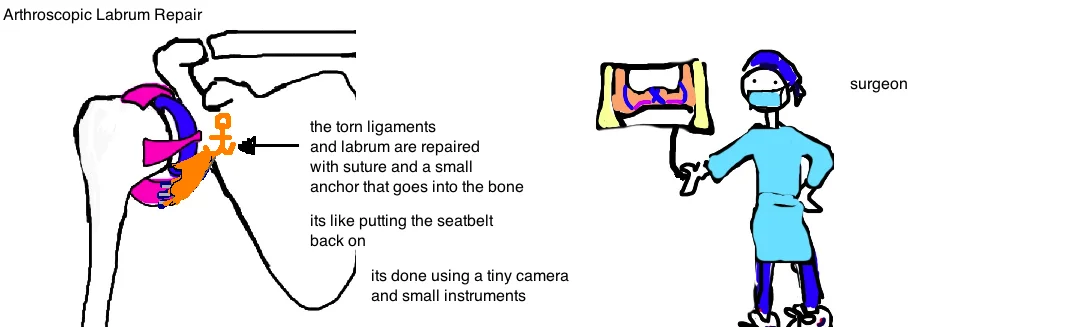 In such cases, surgery can effectively repair the damaged soft tissue (a labrum repair and joint capsuleplication) using arthroscopic techniques (a camera and mini-tools).